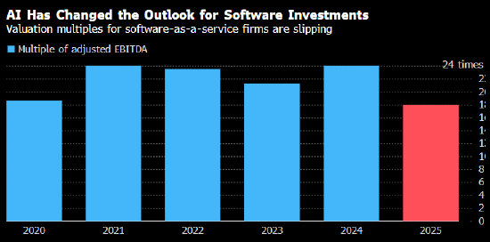 2025年,SaaS公司被私募股权收购的平均倍数为18倍,低于上一年的24倍。